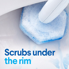 TOILET SCRUBBER: The hexagon shaped sponge heads clean in hard to reach places under the bowl rim and drain for a deeper and faster clean to remove rust. calcium and lime stains
