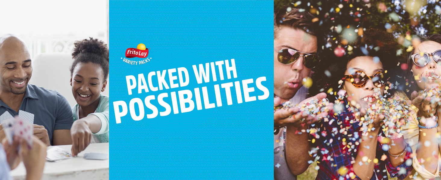 Frito-Lay Variety Packs provides the perfect portion size and variety to keep your entire family happy. No matter what the occasion from stocking the pantry. to your next family party. to the lunch box. or even a desk break. all you have to do is grab a pack and go!