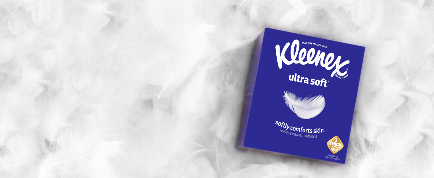 Kleenex Ultra Soft tissues help comfort your face and protect your hands.