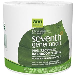 Bath Tissue is one of life’s little necessities. Ours not only does its job well. but helps you consider your impact on the environment. Our soft Bath Tissue is whitened without chemicals containing chlorine. Seventh Generation Bathroom Tissue is made from 100% recycled paper (minimum 50% post-consumer recycled fiber) and is whitened without chlorine bleach.