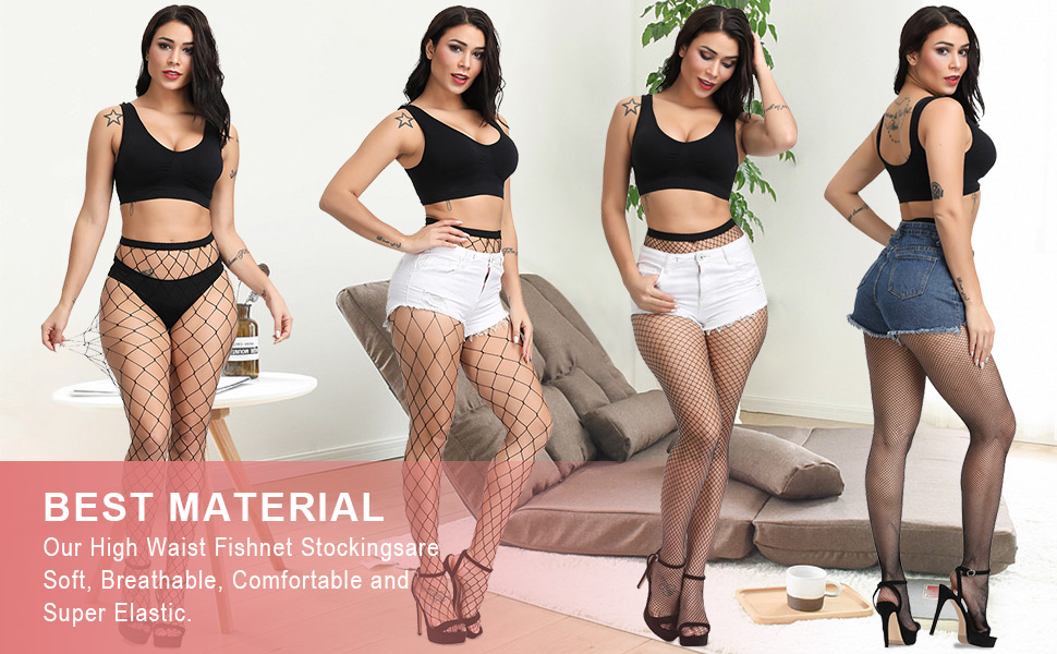 Best Material: Our fishnet stockings have a soft touch. which is breathable comfortable. and very elastic.