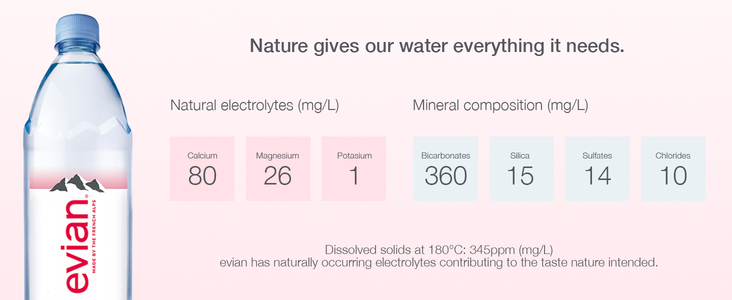 CRAFTED BY NATURE: Evian natural spring water begins as snowflakes and mountain rain. naturally filtered through glacial rocks for over 15 years. giving evian its purity. mineral content and neutrally balanced 7.2 pH for delicious natural spring water.