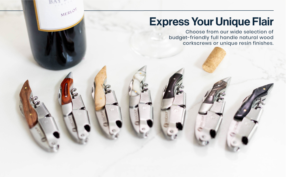 ERGONOMIC – A sleek. wooden handle and durable stainless steel body give this tough wine bottle opener a reassuringly sturdy hold. Makes popping that cork as easy as 1. 2. 3!