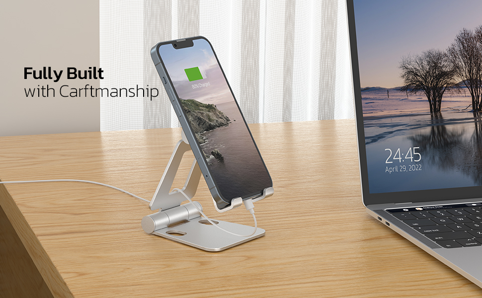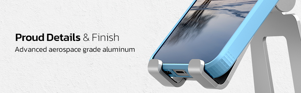 STURDY & PROTECTIVE: The cell phone stand is made of high quality premium aluminum. it stays firmly in place. hold your phone steadily. no worry any wobble at all. The rubber pads can protect your phone from any scratching and sliding.