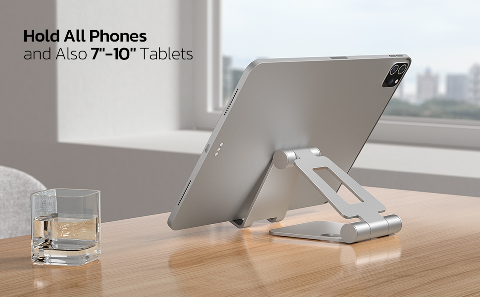 UNIVERSAL COMPATIBILITY: This phone stand works with all 4-10 Smartphones Tablets and e-readers. such as iPhone 13 12 11 Pro Xs Xs Max Xr X 8 7 6. Switch. iPad mini. Samsung Galaxy S10 /S10+/S9 /S9+/S8 /S8+. Samsung Tab. Google Nexus. Kindle.