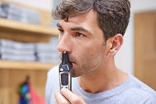 The trimmer quickly trims unwanted nose and ear hair without nicks or cuts.