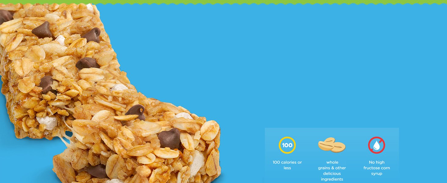 Includes 58 individually wrapped Chewy Granola Bars: (22) Chocolate Chip. (22) Peanut Butter Chocolate Chip. and (14) Oatmeal Raisin