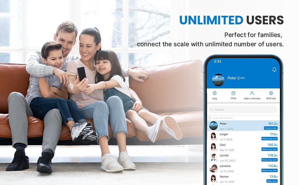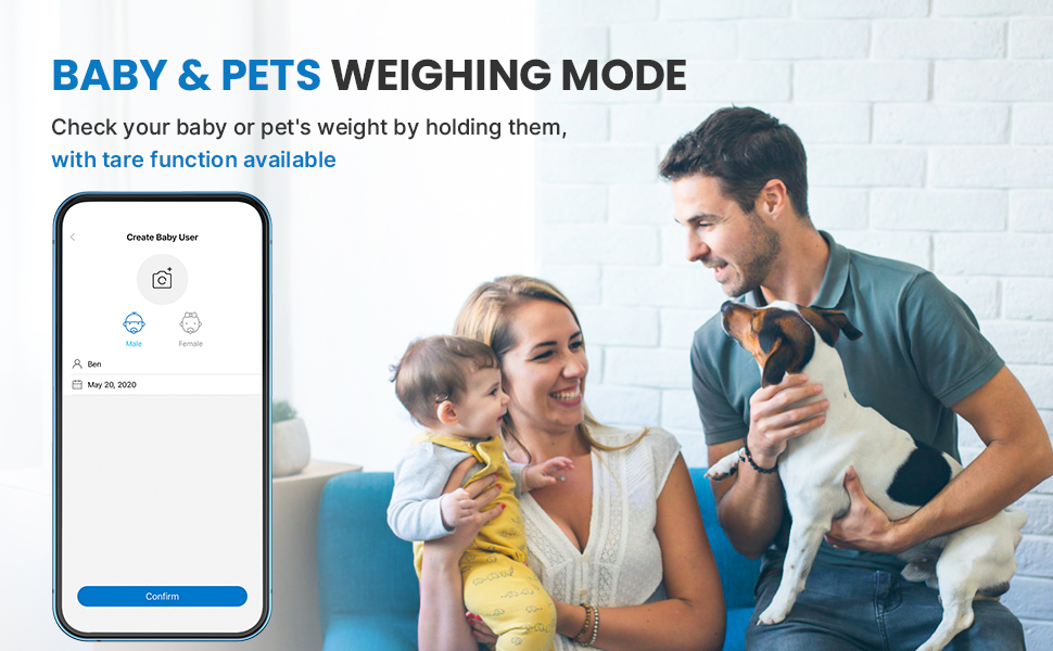 Monitor your progress. unlimited users and baby weighing mode. Renpho connects with apps to help motivate toward your goals. save historical data. and track your daily. weekly. and monthly progress. Use baby weighing mode for weighing baby or pets. 1 scale for whole family. support for adding unlimited users.
