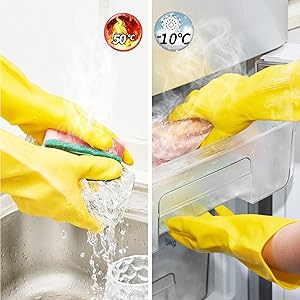 HEAT PROTECTION & COLD RESISTANT – 100g extra thickness latex gloves for better wear-resistant. Keep your hands comfortable from hot water up to 50°C/122°F and temperature down to 0°C/32°F