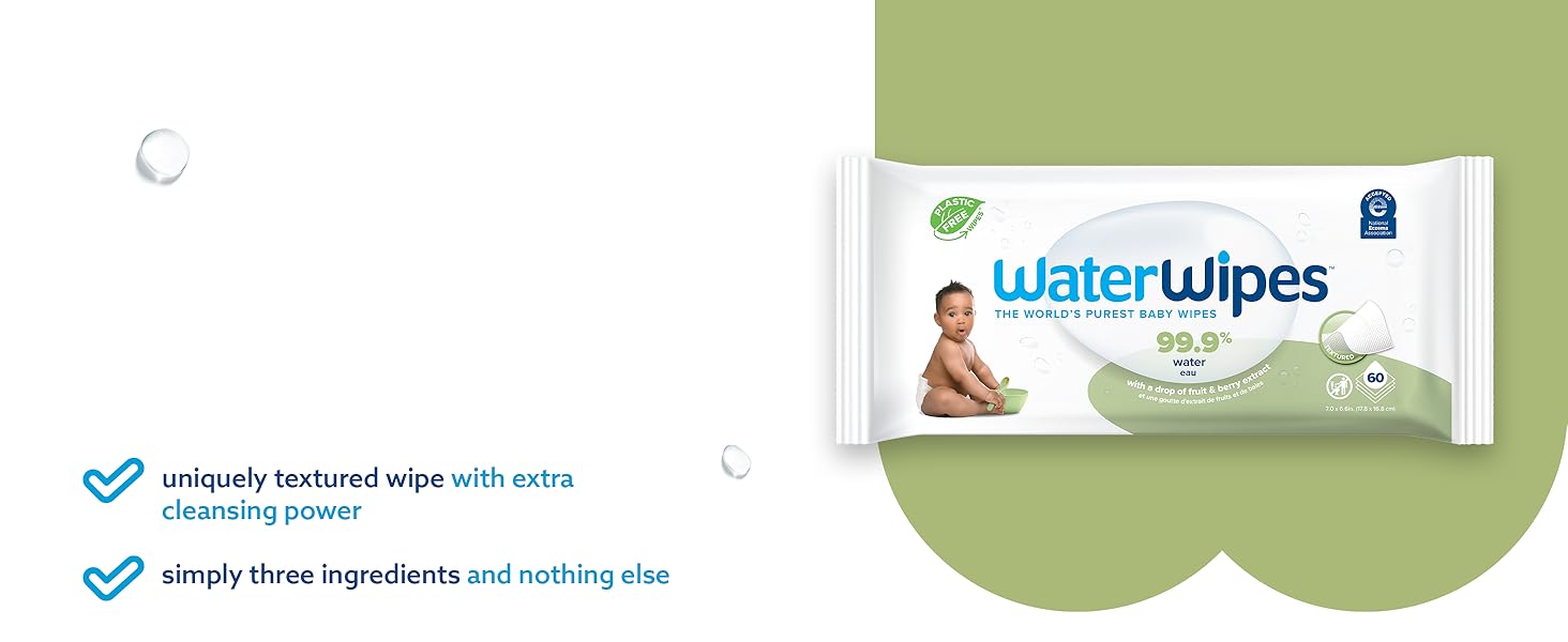 While other wipes have as many as 12 ingredients. WaterWipes Original Wipes are made using only 99.9% purified water and a drop of fruit extract.